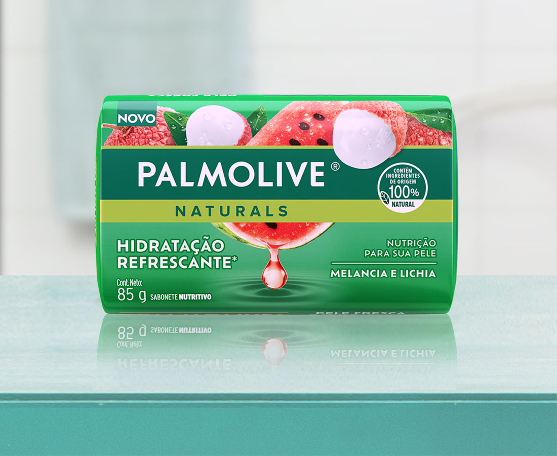 O sabonete em barra Palmolive Naturals Hidratação Refrescante com Melancia & Lichia tem fórmula nutritiva, infundida com ingredientes de origem 100% natural para ajudar a manter a hidratação natural da pele.