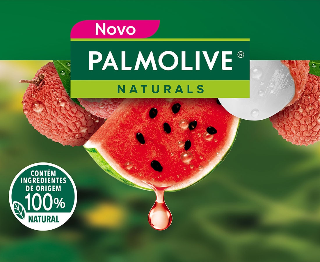 Descubra o sabonete em barra Palmolive Naturals Hidratação Refrescante (com ingredientes hiratantes) com Melancia e Lichia. Sua deliciosa fragrância contém ingredientes de origem 100% natural para uma pele nutrida